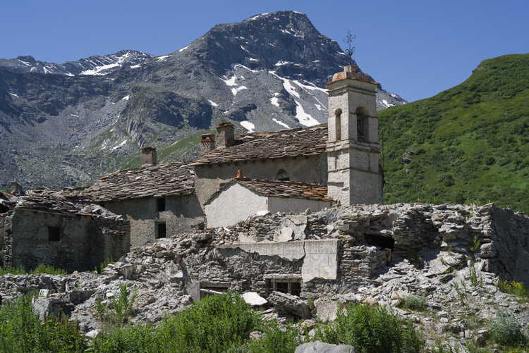 Church in Grand-Croix, 1877 mThe ruins of a village directly underneath the dam of Lago del Moncenisio, which was completed in 1968. |