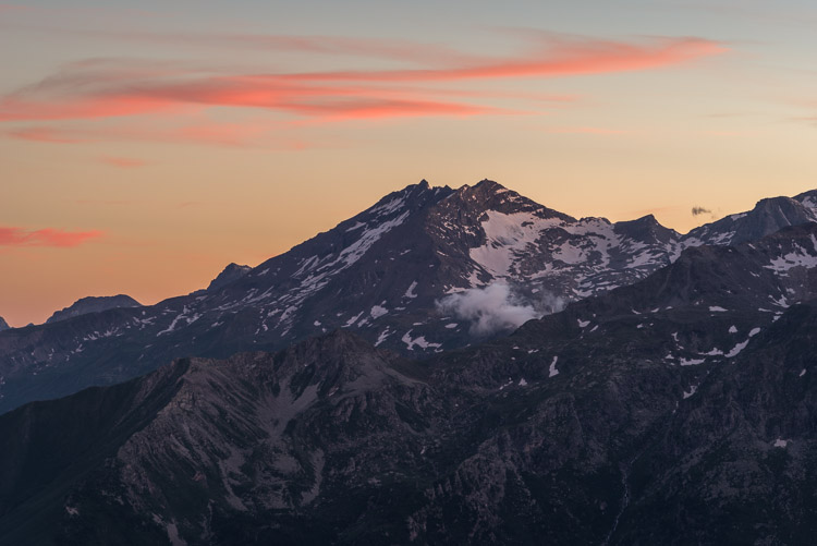 EveningThe same view as on the left, right across the Val Cenischia, this time without a cloud layer. |