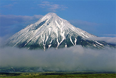 MutnovskyFrom the Tolmachevskoe Lake, about 40 km away from the volcano. The Mutnovsky is 2,322 m above sea level, whereas the lake's elevation is only 646 m. |